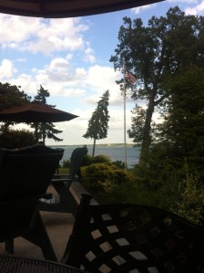 This is the view from the table where my Mom and I dined while we were in New York State this summer. This is the patio at Stonecutter’s pub at Belhurst castle, on the shores of lake Seneca in the Finger Lakes region. It was a gorgeous day and Mom and I were having some great girl-time together. That was right in the middle of the summer. Now the fall has begun and this feels far away in more than the physical sense. Still, this pic is a great reminder of how good it is to take a rest, get away, and find yourself renewed.