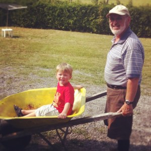 My Dad is a great guy. And one of the biggest joys of my summer was watching him interact with my chosen-nephews when they and their family came for a visit at the farmhouse this summer. So this is my Dad giving Nate a ride in a wheelbarrow. The great thing is that this was about 5 minutes after they arrived. It took Dad no time at all to find fun ways to engage the boys. When I was a kid, my Dad was the guy who’d run through the woods at my grandparents’ cottage with my brother and I, toy guns in our hands and laughter bubbling out of us like crazy people. I loved getting to see an echo of that as my Dad interacted with these precious boys and their little sister. My earthly father is a blessing (to me, and to many others!) and a reflection of my Heavenly Father.