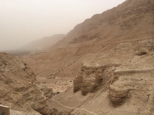 We travelled from the green and verdant land of the shores of Galilee to the rock-and-dust of the desert. Where water has cut deep slashes through the hills, and then disappeared, leaving the place looking like an abstract wood carving. It is a hard and harsh land. If the Canadian wilderness is one that will steal your breath away, even as it tries to kill you (I think I am paraphrasing an Alden Nowlan poem, there), the desert places of Israel are ones that will try to drive you insane even as they try to kill you.
