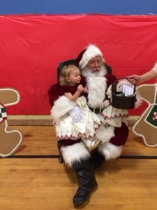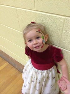 Flash forward to Aly’s visit with Santa. She loved every moment of it. She got to wear her beautiful dress and her gold shoes. She got to have her picture taken. She got a candy cane (and one for Patchy, her build-a-bear dog who was dressed in a doll-size version of Aly’s dress). She got to decorate a cookie. She got her face painted. For my darling girl, it was a magical morning. And her enthusiasm, her innocence, her pure in-the-moment joy, were contagious.