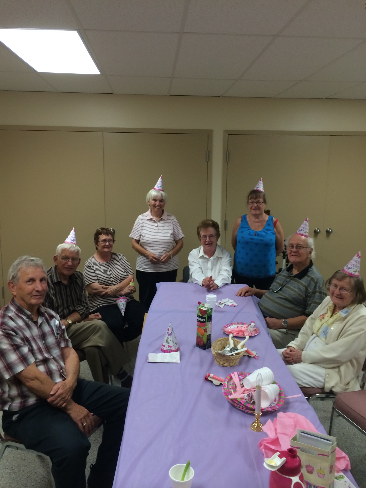 Tonite, after arriving home from my regular class at the gym, I was called by my co-leader to come over to the church for a moment. When I arrived, I found my group BBQing burgers, putting out salads and wearing “happy birthday” hats. My birthday isn’t for another 5 days, but my group wanted to celebrate with me and they wanted to surprise me. They succeeded in both.