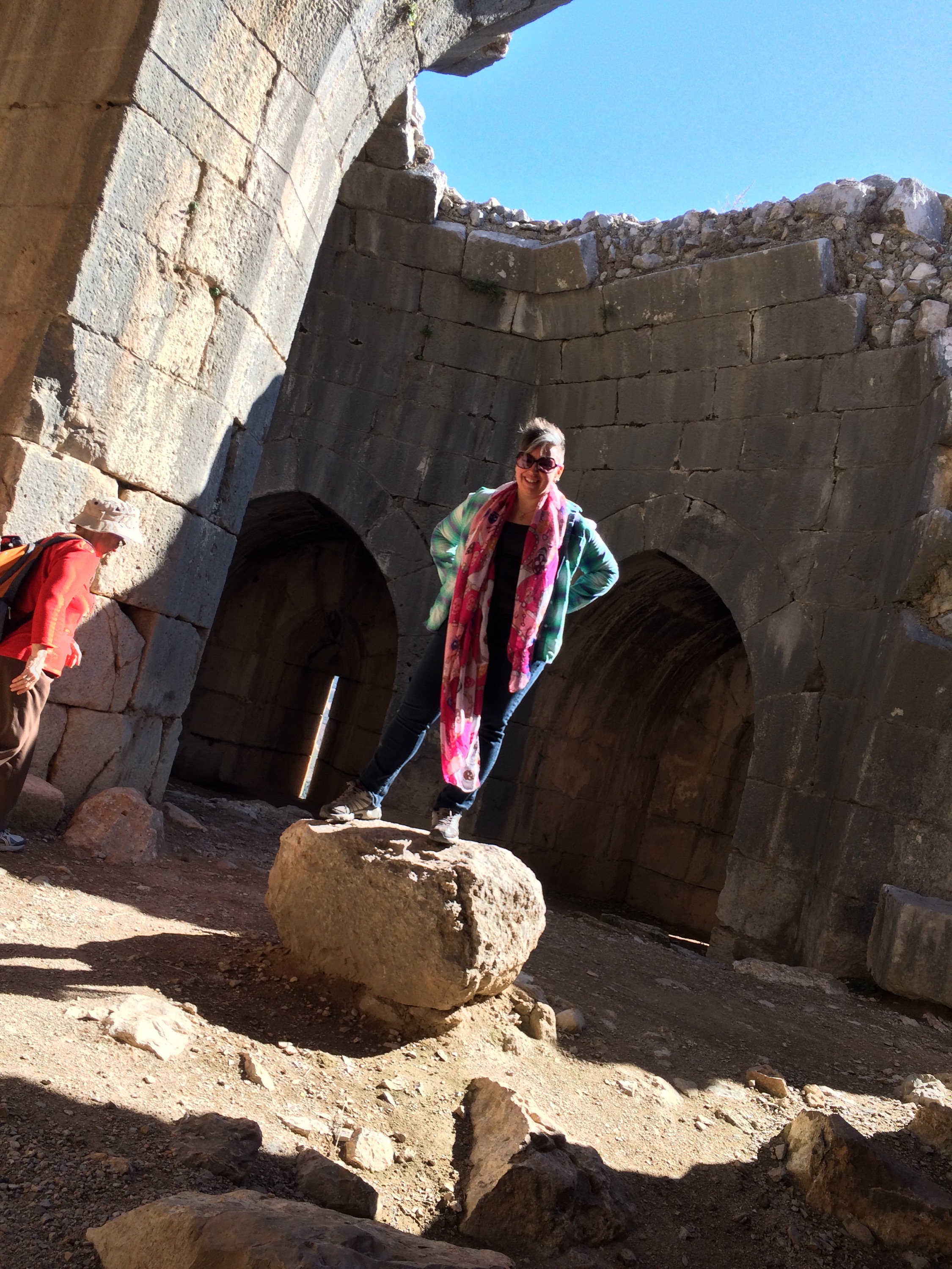 Standing in one of the empty alcoves where there used to be a stone “god.” Jesus stood in front of these statues as Peter declared him the Son of the Living God.