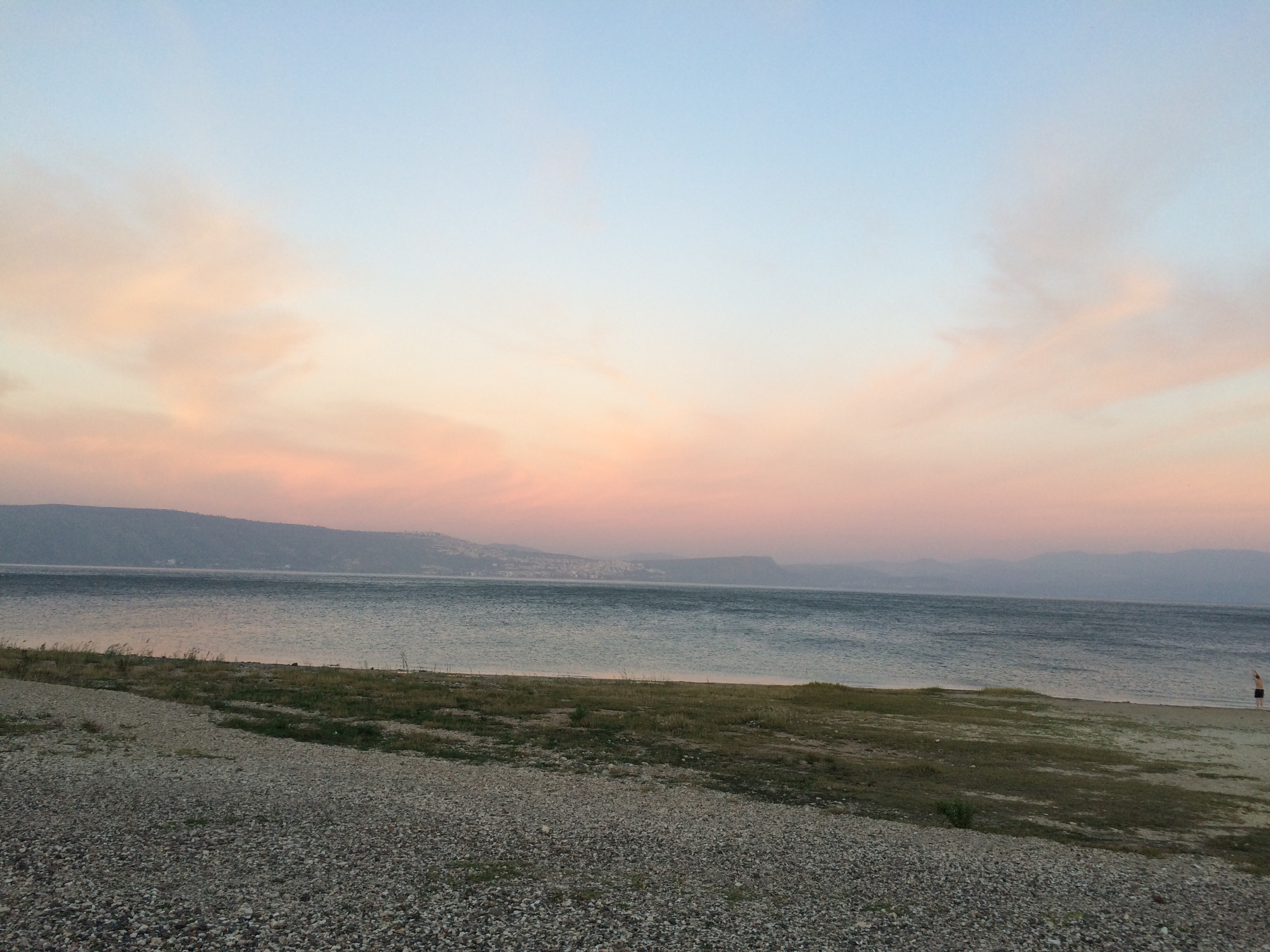 Starting the morning on the shores of a very breezy Sea of Galilee.