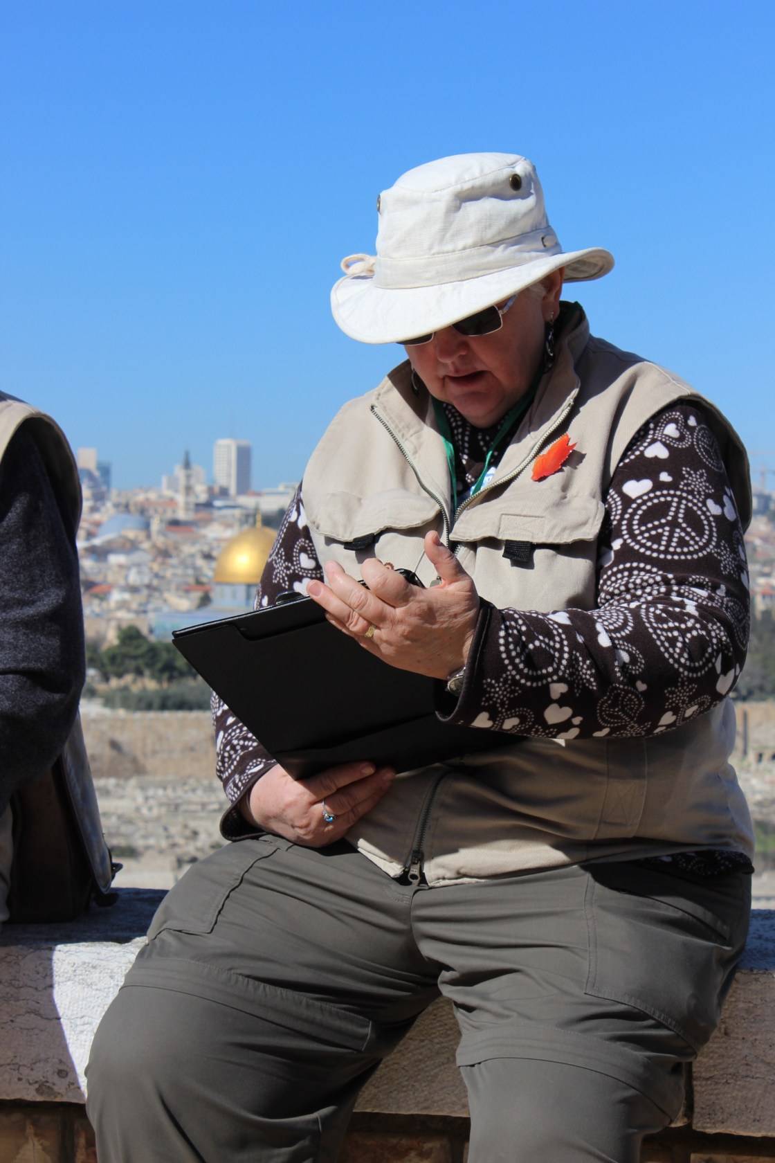 Mom reading the Palm Sunday passage on the Mount of Olives.