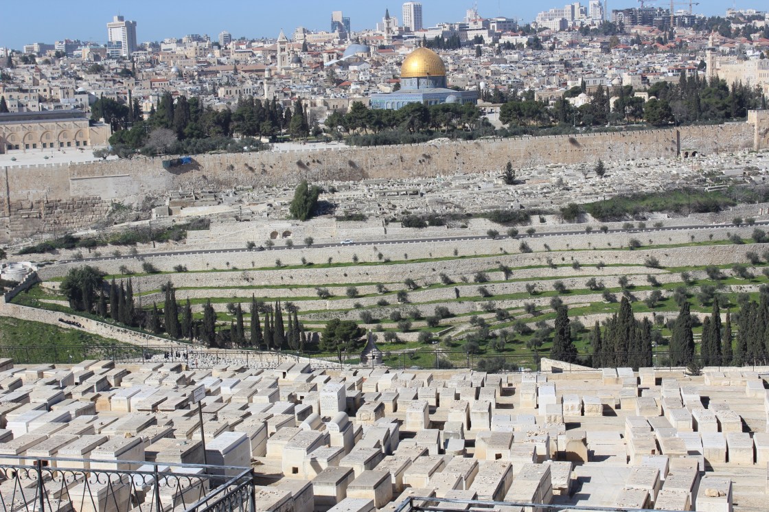 A wider view of the Temple Mount as seen from the Mount of Olives.