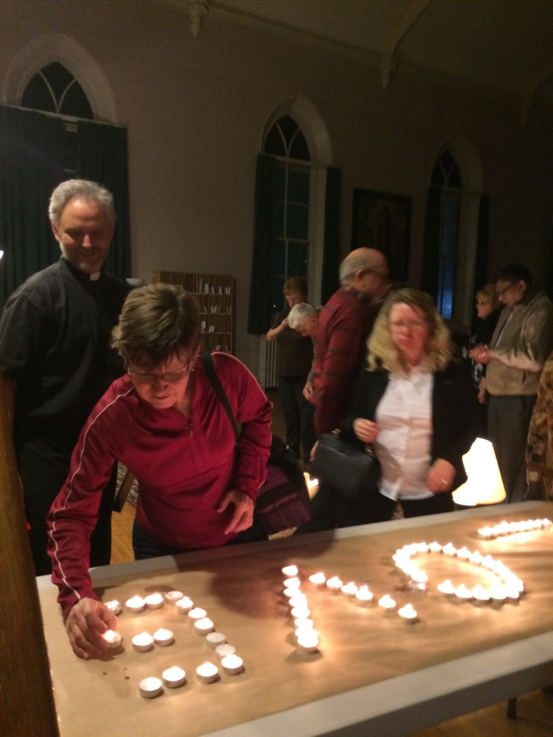 Geoff watches over a participant as she lights a candle in the Maundy Thursday room.