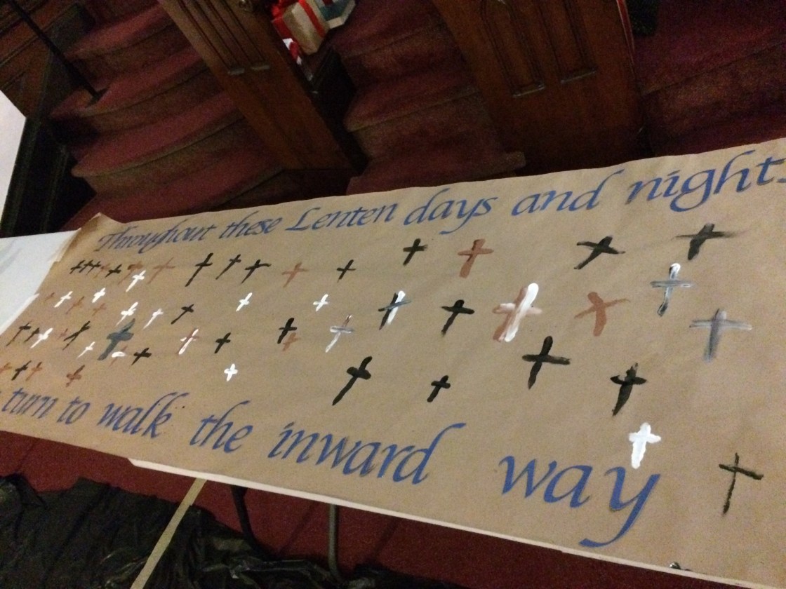 The Lenten cross banner marked by this evening’s participants.