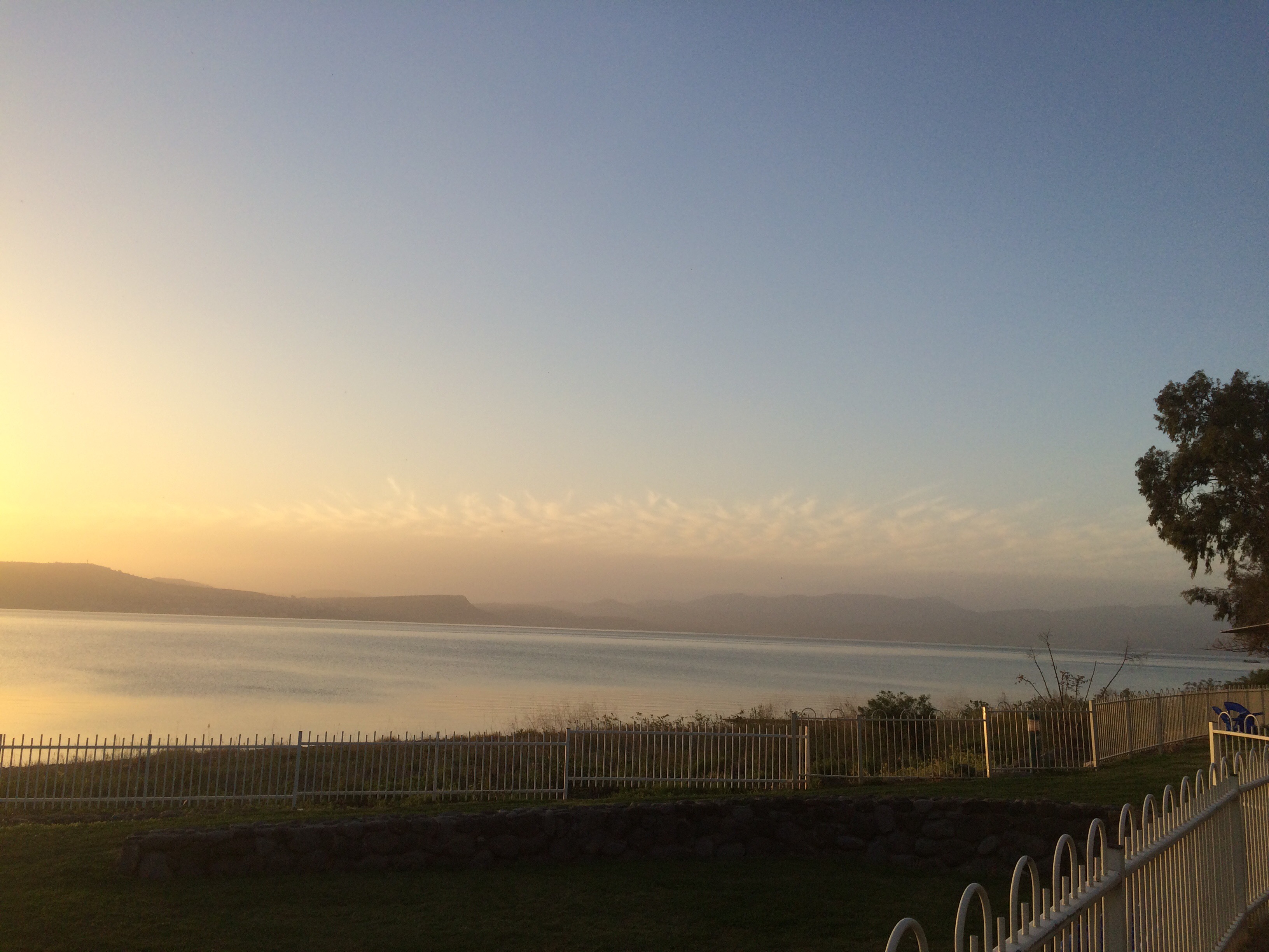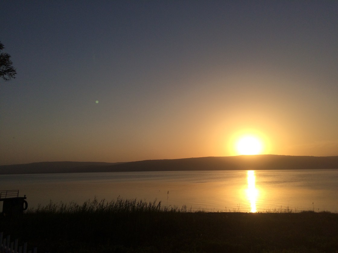 Below: The Sea of Galilee at Ein Gev Kibbutz as the sun sets.