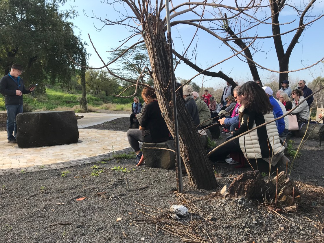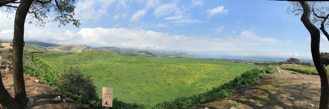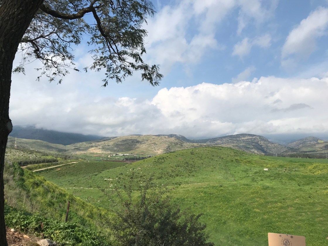 Today we began with a worship service at Kursi (where Jesus cast the demons out of the man and they went into a pack of pigs who ran into the sea and drowned) – thanks to the Rev. Duncan Cameron for an excellent sermon!; we travelled to Tel Hazor to learn about this site mentioned in the Old Testament and hear the story of Israel’s 6 Day War; we went on to Tel Dan to see a 5,000 year old arch, dating to the time of Abraham which caused all the architectural textbooks to be rewritten (before its discovery 25 years ago, everyone thought that the Romans invented the arch thousands of years later); we stood at Caesarea Philippi and heard how Peter confessed Jesus as the Son of the Living God; we scaled the Golan Heights to eat a glorious lunch at a Druze restaurant while watching the clouds blow across the snow on Mount Hermon; we continued on the Golan Heights to hear the story of the Yom Kippur war (including how our guide, Aharon, was a 19 yr old on the front lines of that war); and we ended the day at Olea Essence learning about Olive Oil and the beauty products they make from the waste created through the olive pressing process.
