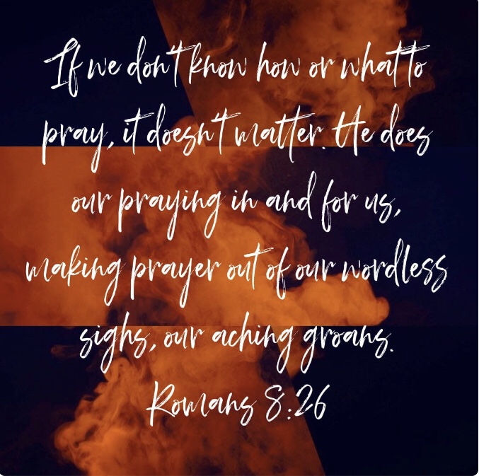 If we don’t know how or what to pray, it doesn’t matter. He does our praying in and for us, making prayer out of our wordless sighs, our aching groans.