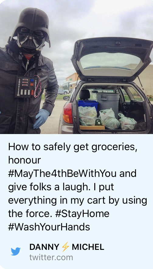 And this tweet, which shows how creative Star Wars dorks can be during the pandemic: