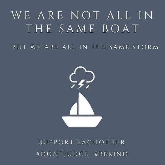 None of us know what someone else’s boat looks like. To paraphrase one of my friends: some people are weathering this storm in nothing but a leaky dinghy.