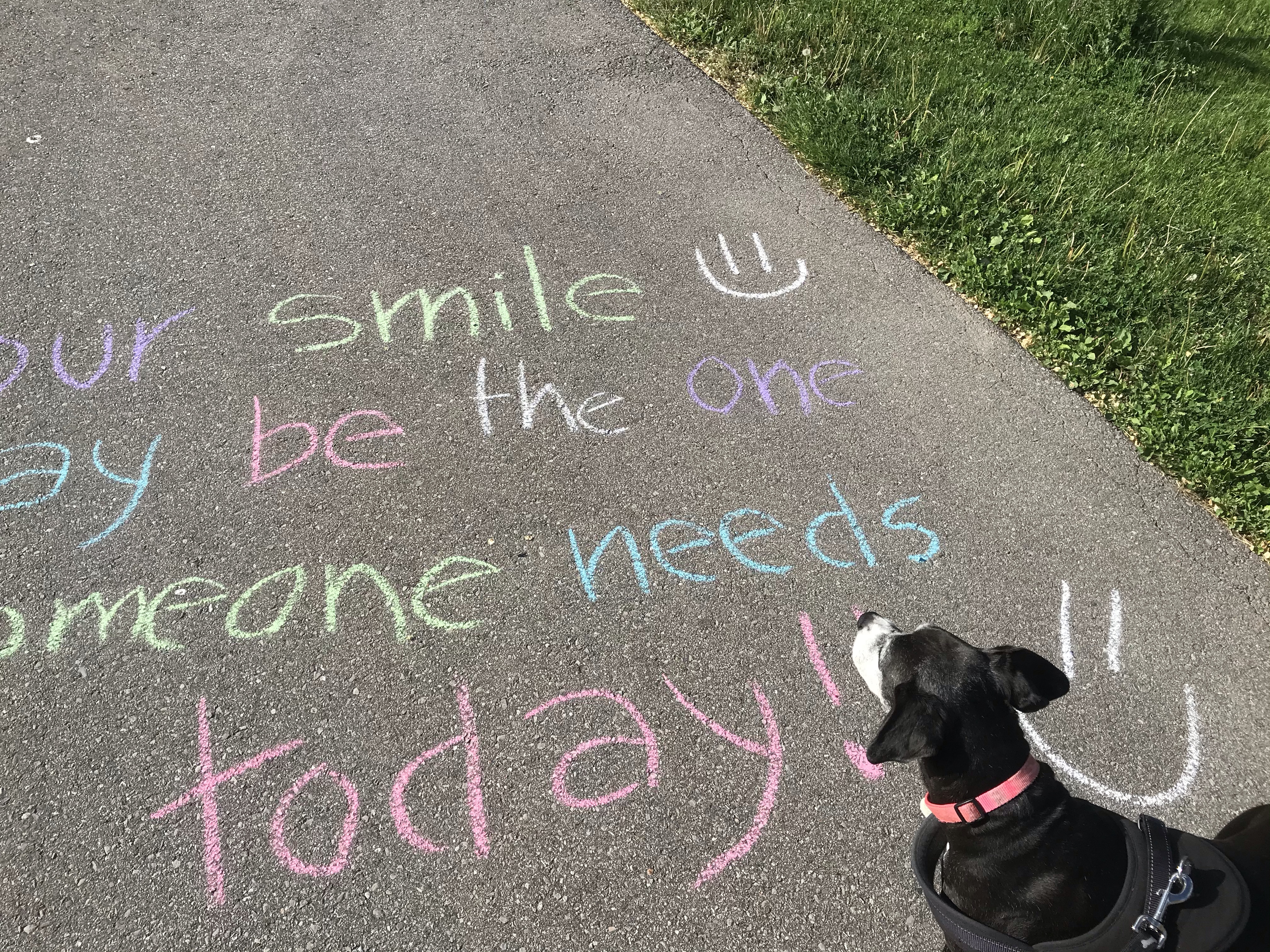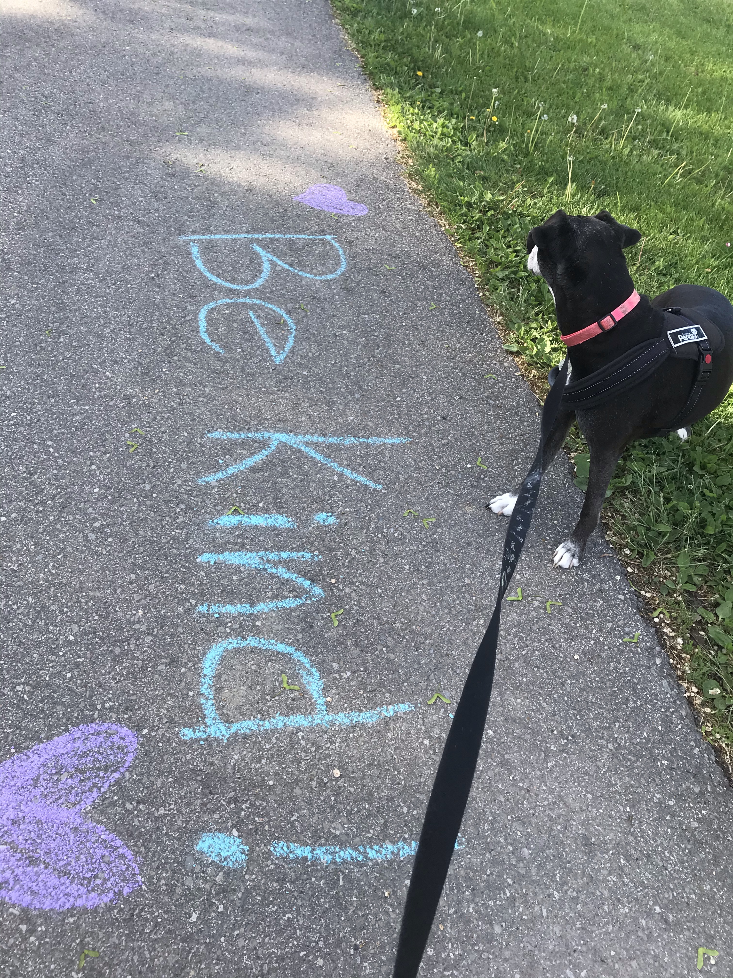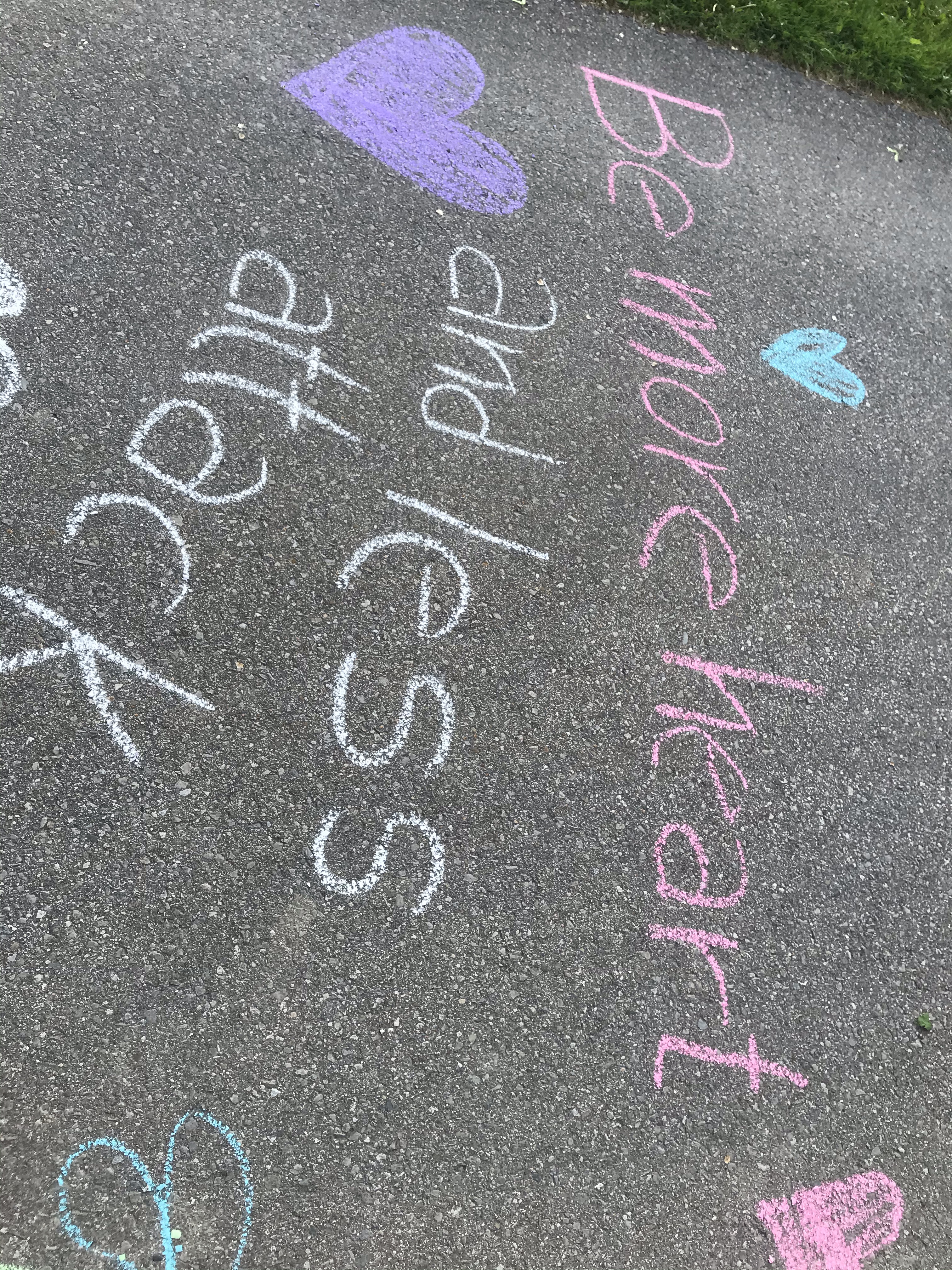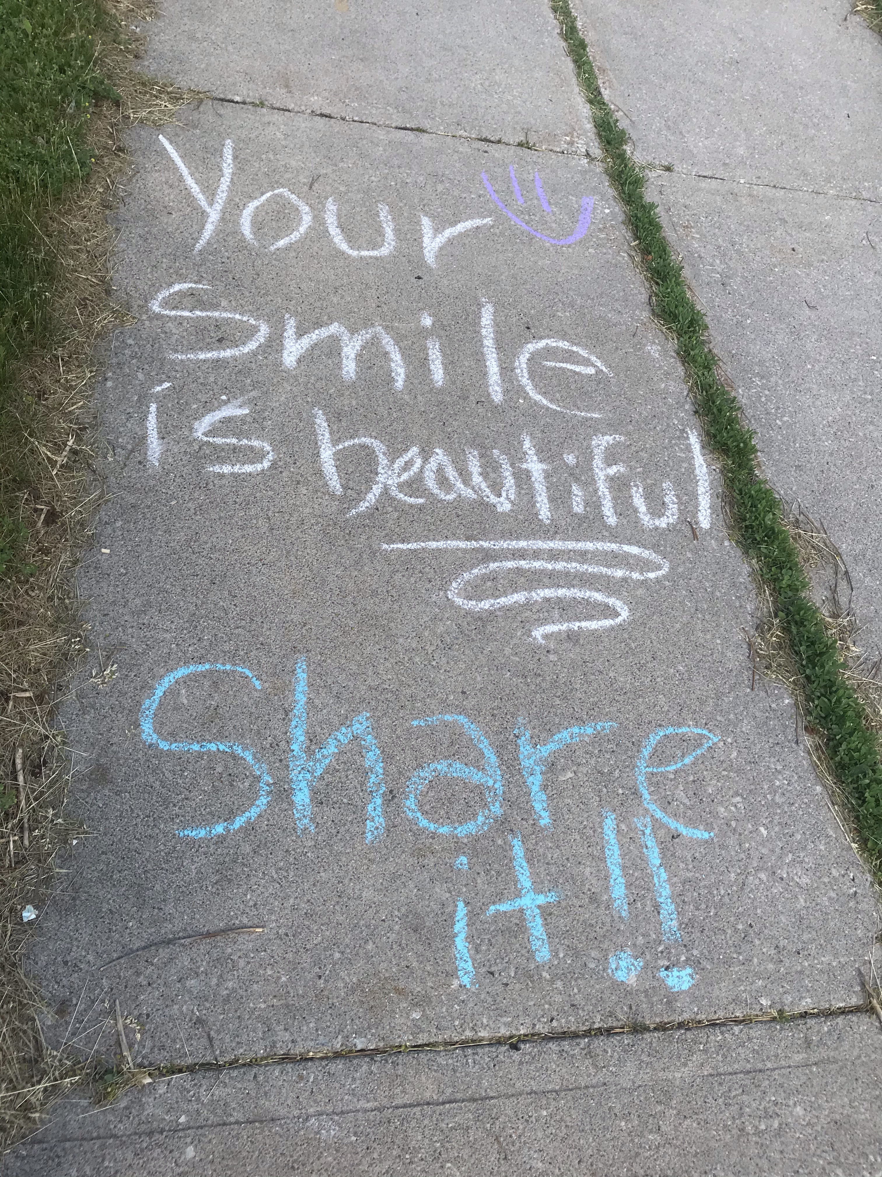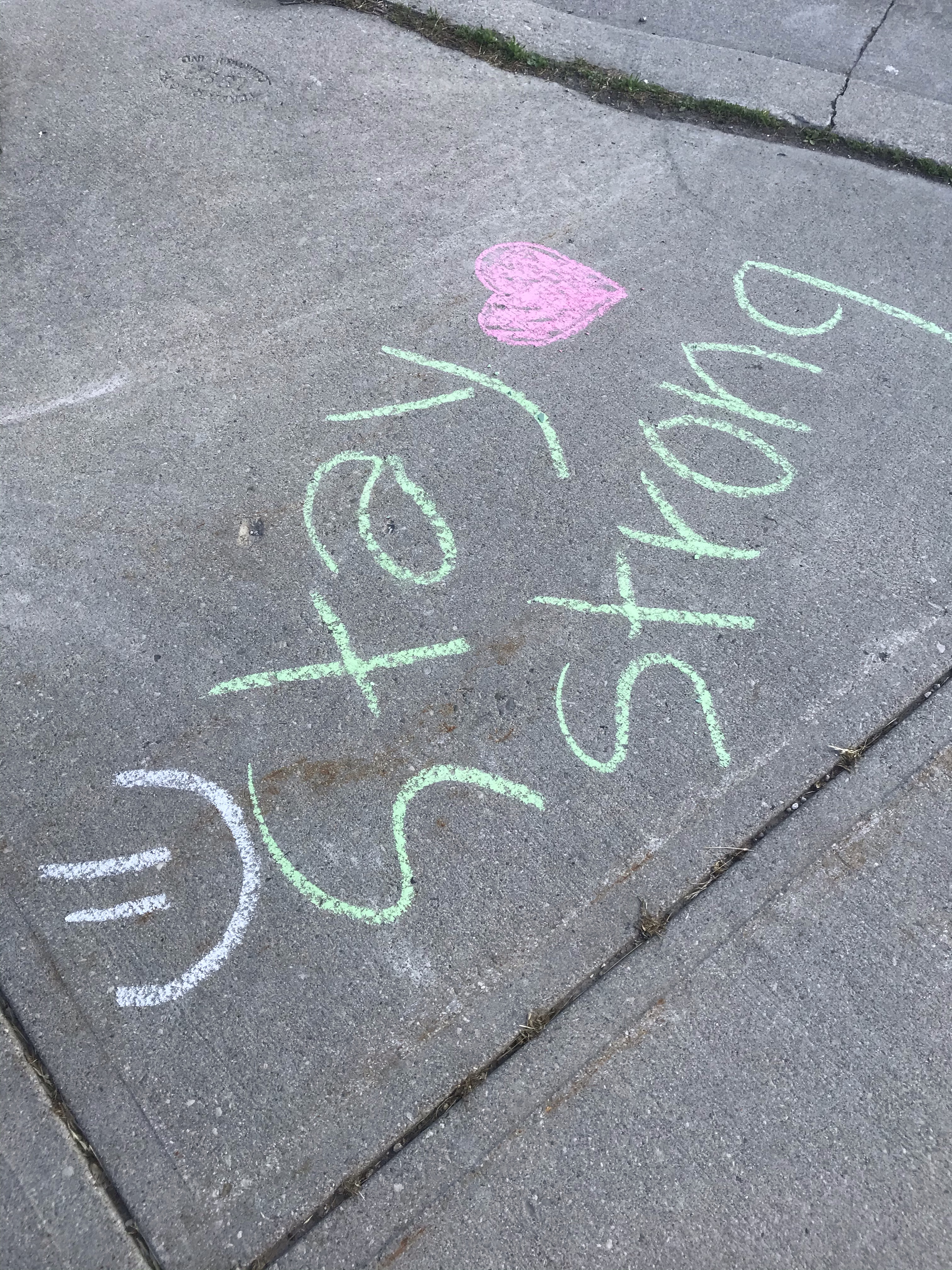 In the sermon of that worship blog, I made the commitment to bring sidewalk chalk with me on walks. In order to write and share messages of hope with the community. So here are some of those messages. I have more chalk, and I’ll do more as the days progress. We need hope and kindness now more than ever: