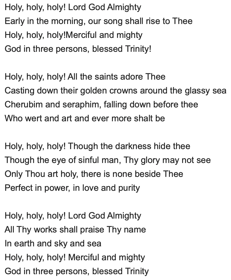 Our first hymn this week is #299 Holy, Holy, Holy: