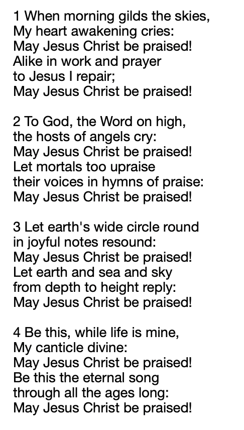 And our final hymn is #438 When morning gilds the skies: