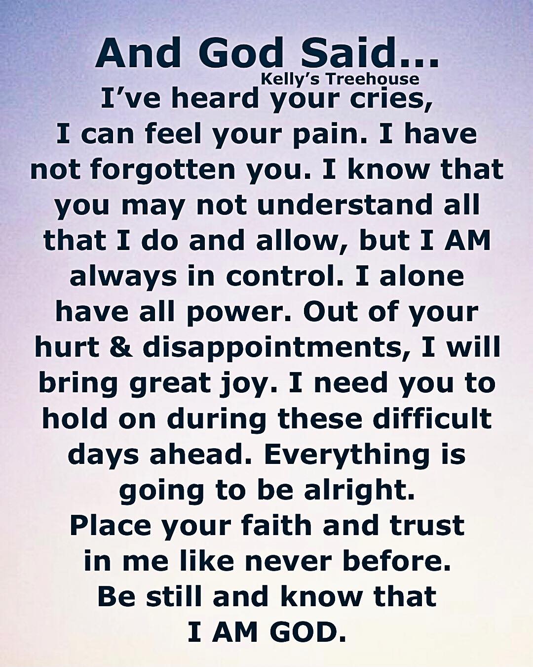 Until tomorrow, dear friends, hold to hope, hold to faith. God has promised that he will never leave us, never forsake us!