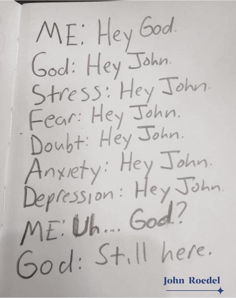 God is still here, no matter what other (unhelpful) voices are whispering in your ear.