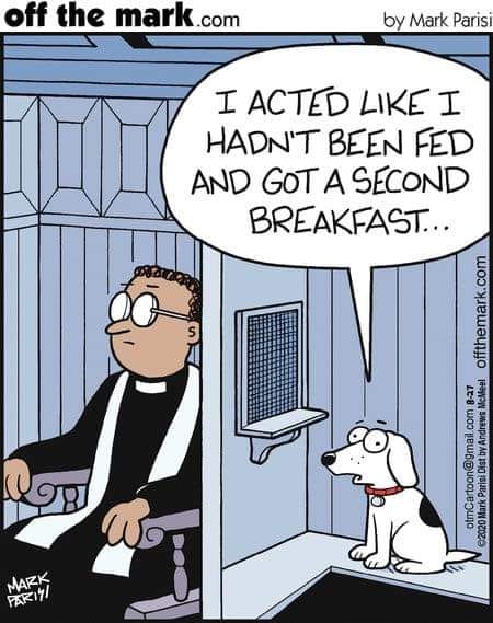 Ok, anyone who has ever had a dog, knows that this is absolutely what a dog would say in the confessional: