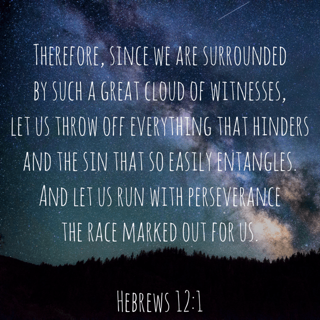Until tomorrow, dear friends, keep running the race and finding strength and encouragement in that great cloud of witnesses.