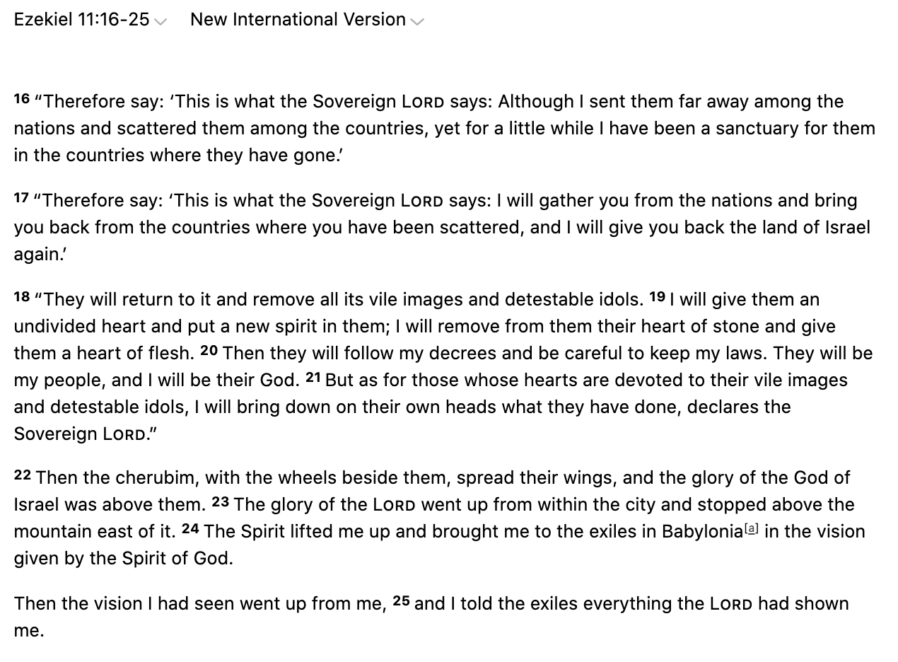 The passage that Dad is preaching on Ezekiel 11:16-25: