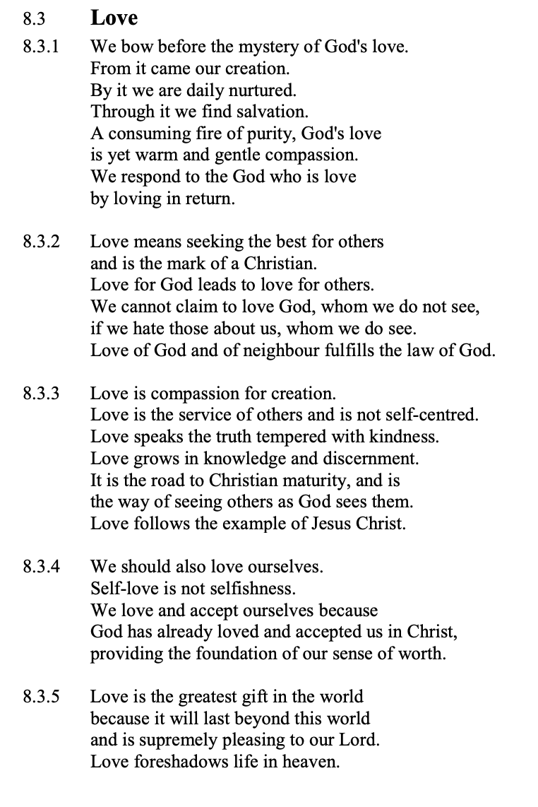 This section from Living Faith, one of the Presbyterian Church in Canada’s subordinate standards (that is, guiding statements for our church that are not the Bible itself):