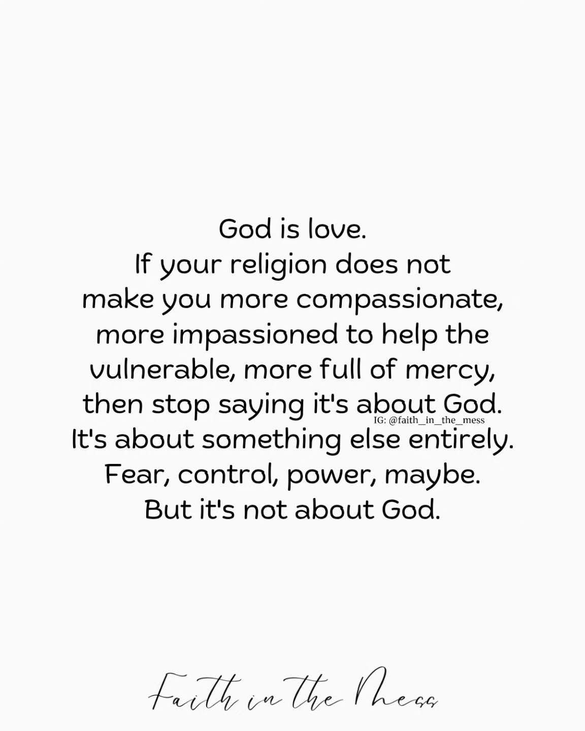 As far as I am concerned – love is the bottom line of Christianity. It is what is meant to drive us, what every decision should be reduced to (what is the most loving decision here?), what should lead us to (like our Saviour) lay down our lives in service of others.
